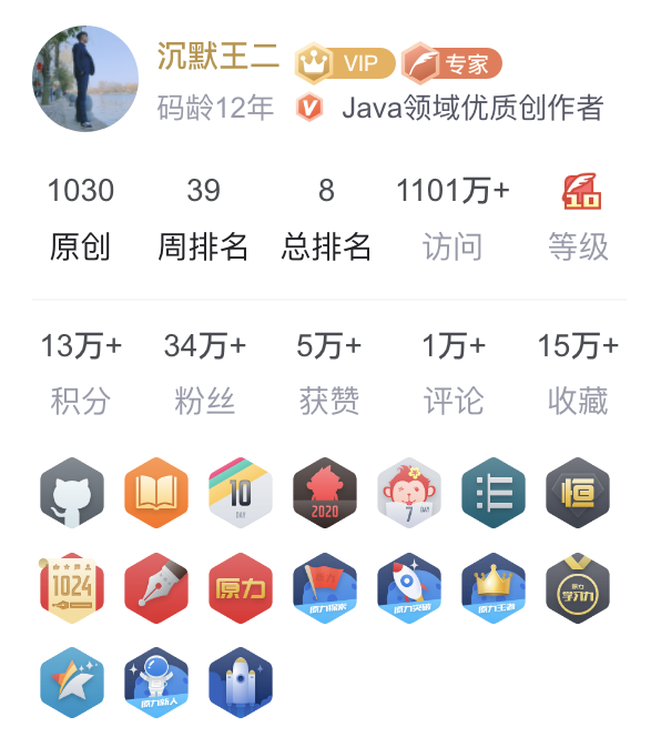 两届博客之星,总榜前 10 选手,访问量 1100 万+,粉丝 34 万+,妥妥的裆部博主,哦,不,头部博主。