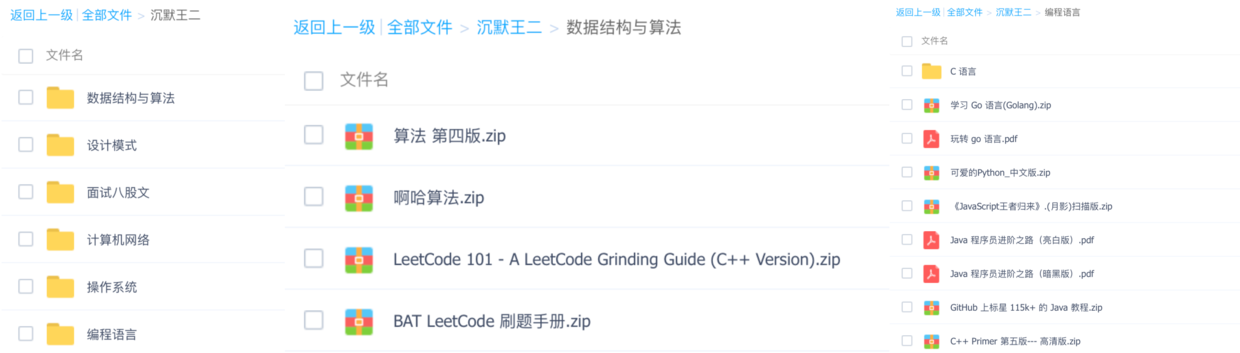 学习资料有 BAT 大佬的刷题笔记,有《二哥的Java进阶之路》的 PDF 版电子书等等。