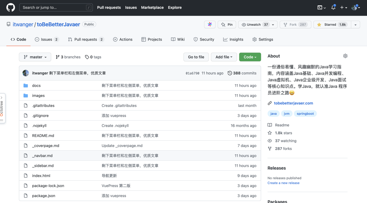 目前主要维护的《二哥的Java进阶之路》开源版在 GitHub 上有 2.7k+ 的 star,和出版社约定的是,超过 1 万 star 就出书,小伙伴们可以来点赞支持下。