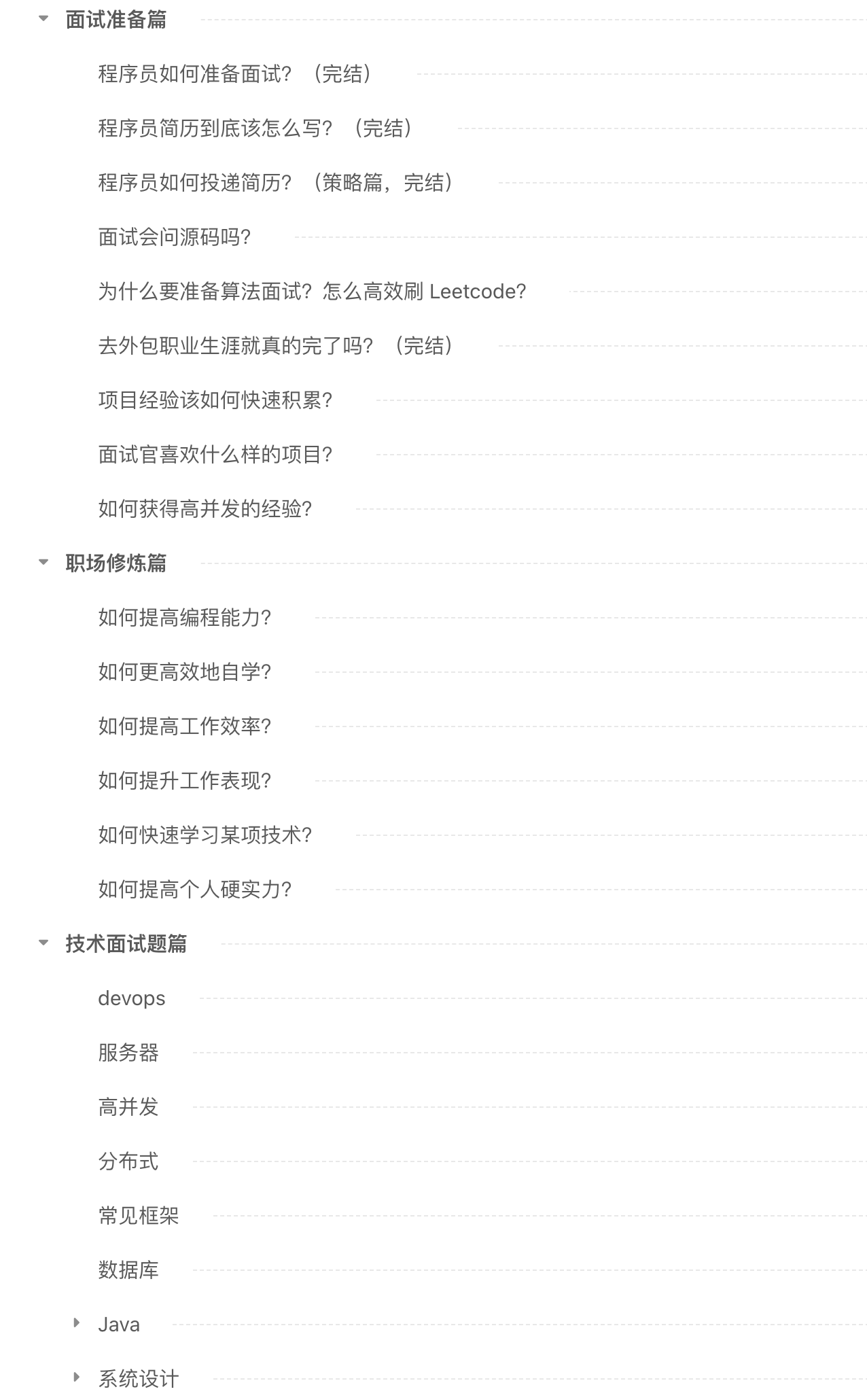 - Java 面试指南,今年重点更新内容,涵盖面试准备篇、技术面试题篇、面经篇、职场修炼篇等等硬核内容。