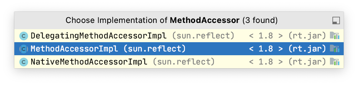 MethodAccessor 接口有三个实现类,其中的 MethodAccessorImpl 是一个抽象类,另外两个具体的实现类继承了这个抽象类。