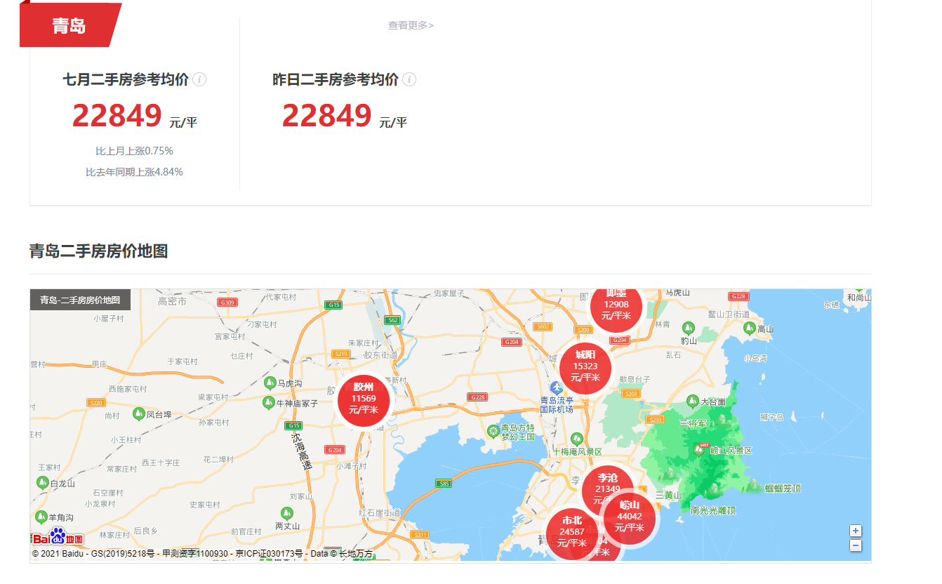 青岛房均价两万多了吧。崂山和市南比较贵,其它地相对好一些。下面这张图有各区的房价,不是太准,不过可以参考下呀。感觉程序员在北京干几年,攒个首付,然后回青岛找个相对稳定的公司上班,买房压力还不是很大(除了买崂山和市南啊)。