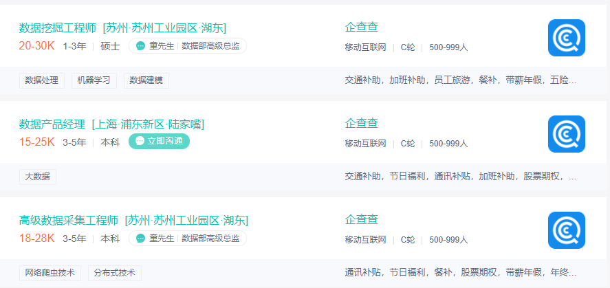 跟上面的公司相比,企查查算是一个小而美的公司。企查查是苏州的本地企业,目前来说口碑还是很不错的。目前企查查的业务很赚钱,自己的大楼也差不多修好了。没有强制加班,全额社保和公积金。我没有查到企查查的校招薪资,看 boss 上的社招薪资水平不算太高,只能算还可以了。