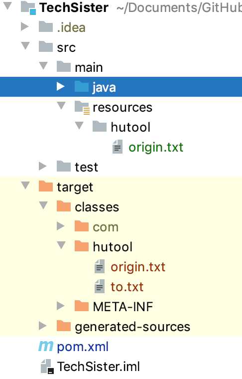 FileUtil.getInputStream("origin.txt")假设文件放在 src/resources/hutool 目录下,则路径参数改为: