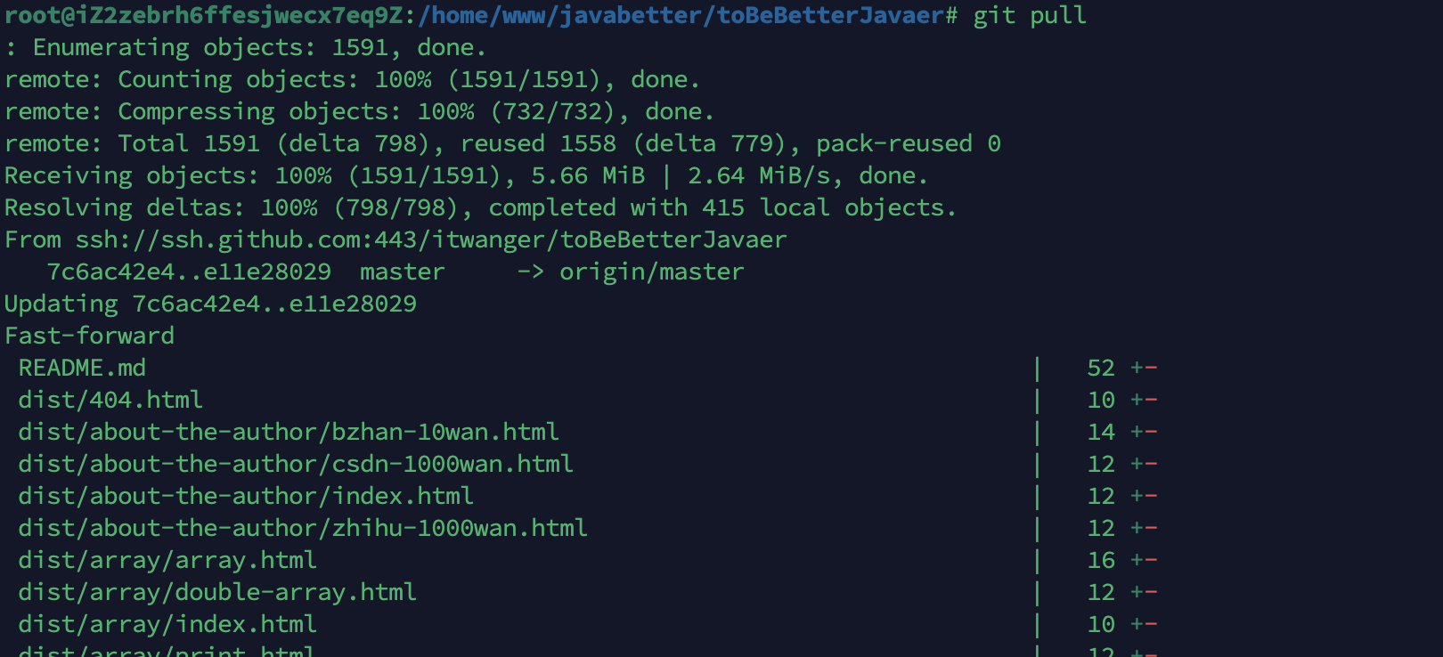 2024年01月16日,这天要更新《二哥的 Java 进阶之路》,远程连接到服务器上后,执行 git pull 命令,结果报错: