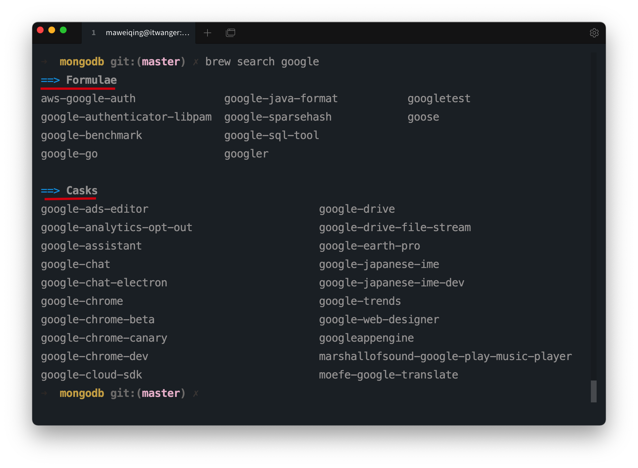 通过 brew search google 我们也可以看得出两者之间的区别。