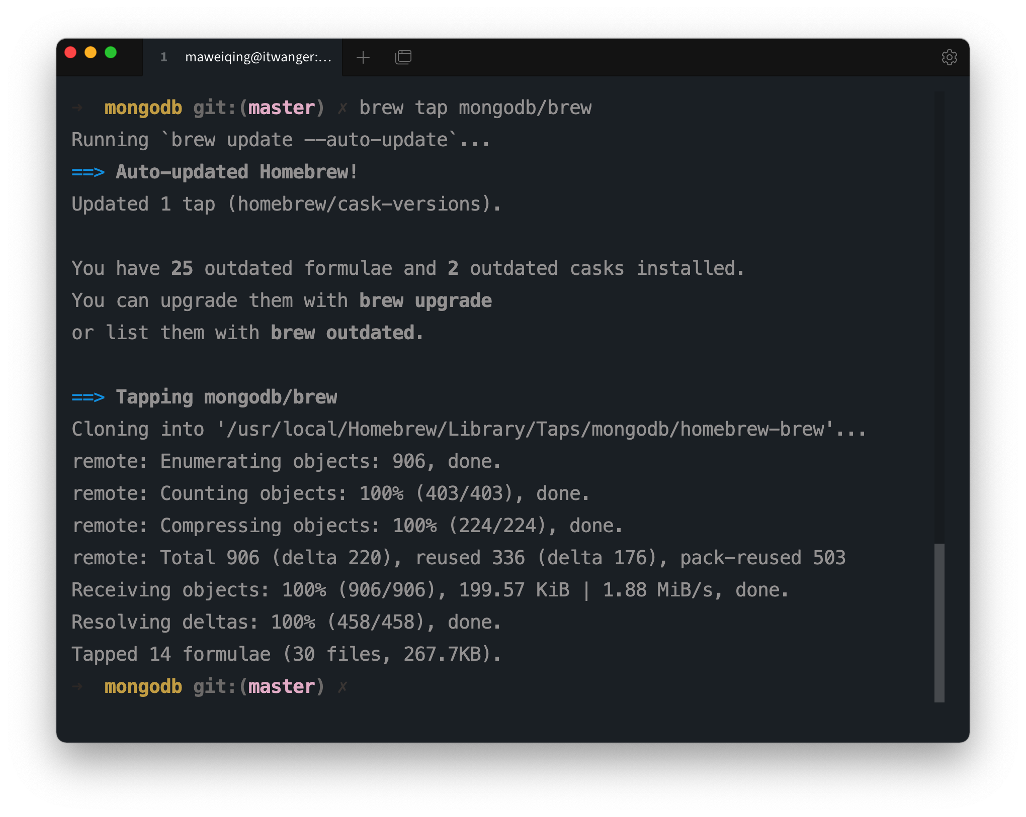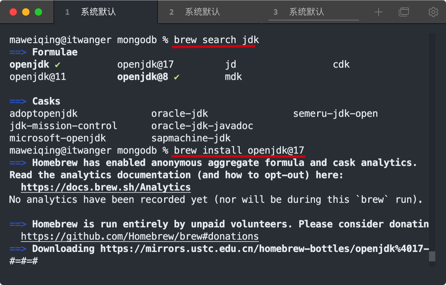 本来打算在公司偷偷摸摸给星球的用户写一篇编程喵整合 MongoDB 的文章,结果在通过 brew 安装 MongoDB 的时候竟然报错了。原因很简单,公司这台 Mac 上的 homebrew 环境没有配置好。刚好 二哥的Java进阶之路上缺少这样一篇内容。