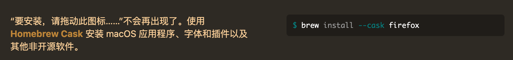 - cask(s),安装 macOS native 应用的扩展,可以理解为有图形化界面的应用,带 s 为复数