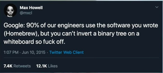 这里顺带给大家提一则小故事,教别人学算法的大佬可以拿走了:homebrew 的作者去面 Google,被考算法题: 反转二叉树,结果没通过被拒了,😆