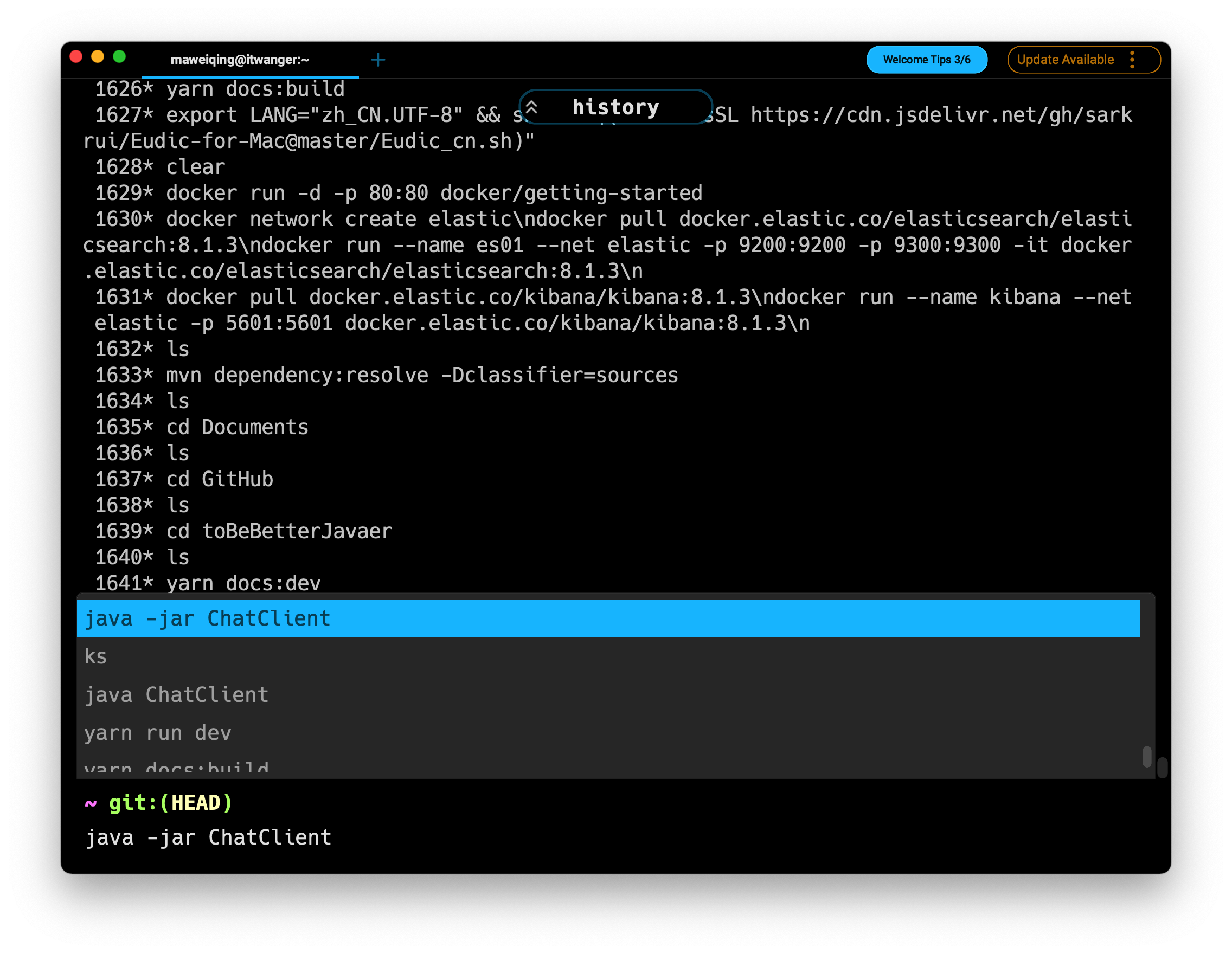 - 命令历史,macOS/Linux 下可以使用