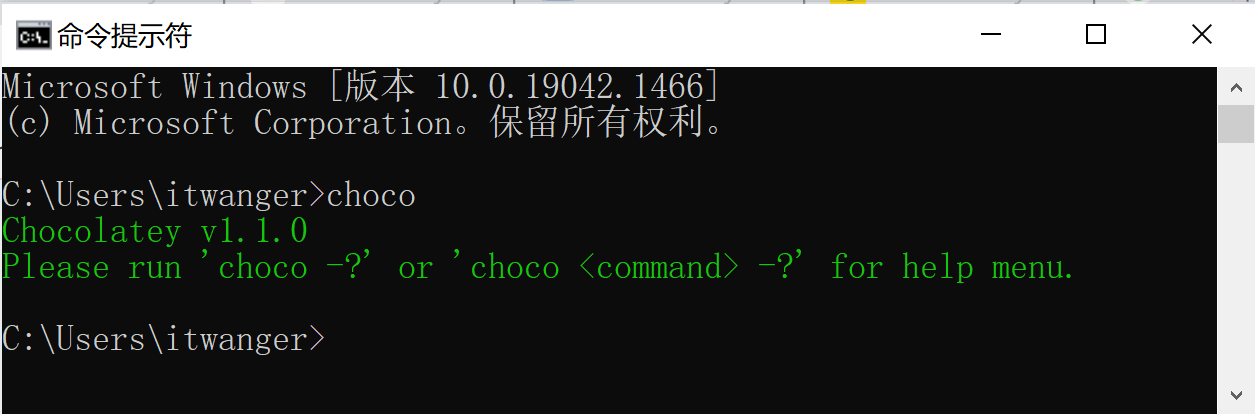 如果不确定是否安装成功的话,可以通过键入 choco 命令来确认。