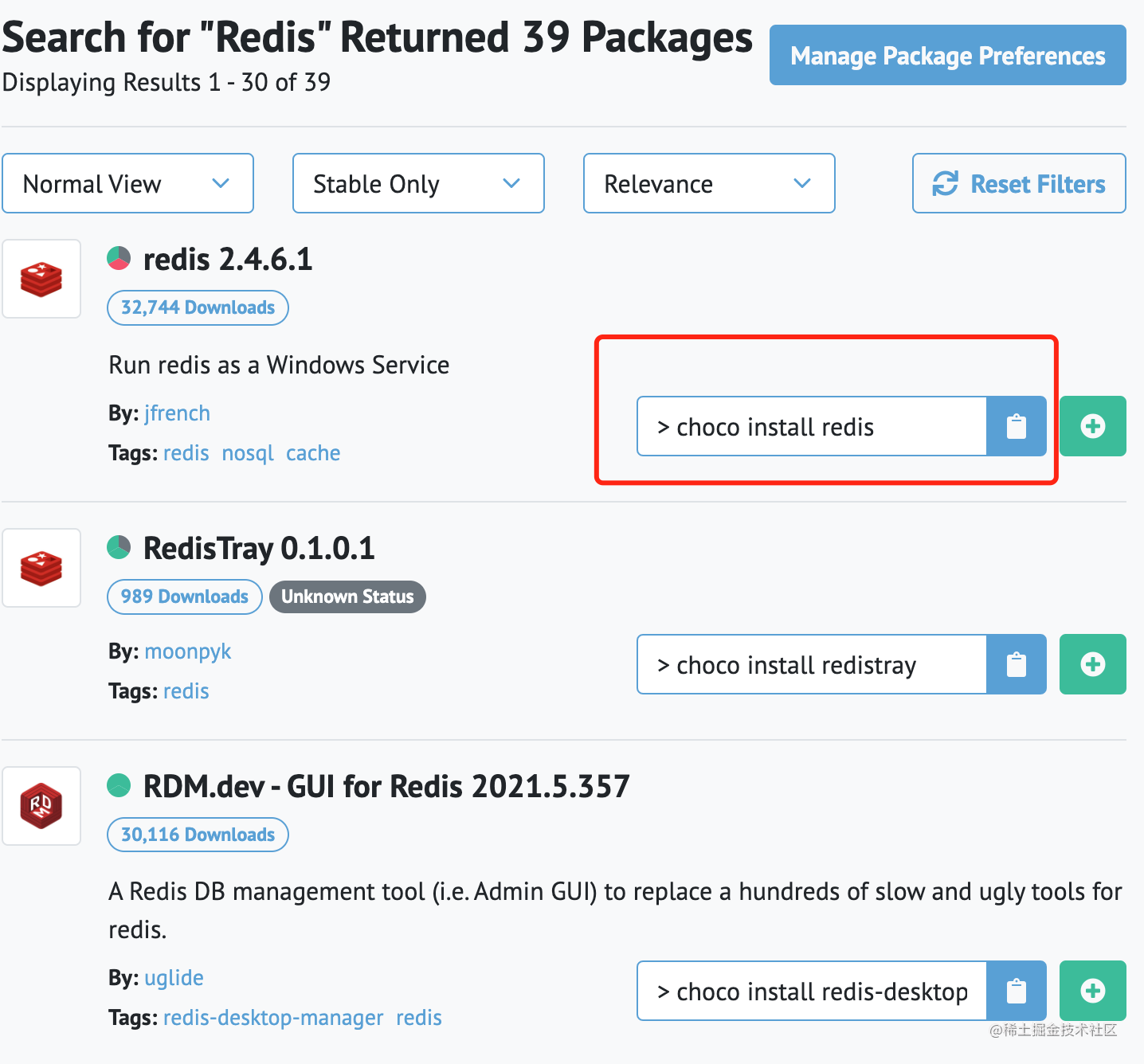 再比如说安装 Redis,只需要找到 Redis 的安装命令在 Choco 下执行一下就 OK 了。