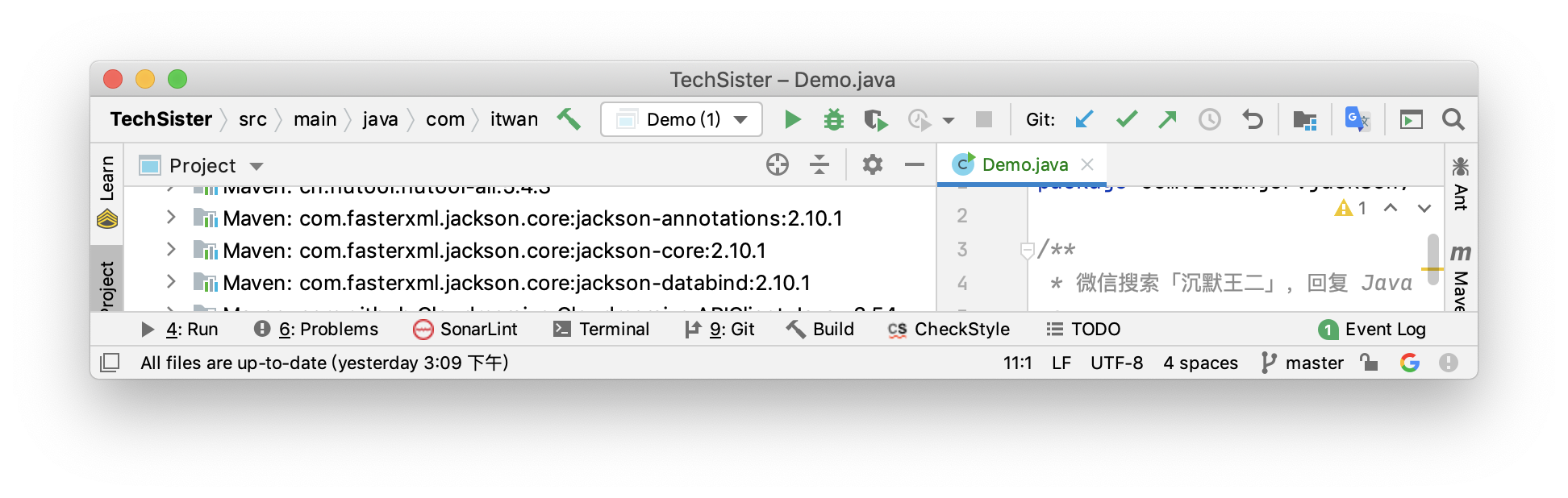 </dependency>jackson-databind 依赖于 jackson-core 和 jackson-annotations,所以添加完 jackson-databind 之后,Maven 会自动将 jackson-core 和 jackson-annotations 引入到项目当中。