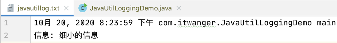 }程序运行后会在 target 目录下生成一个名叫 javautillog.txt 的文件,内容如下所示: