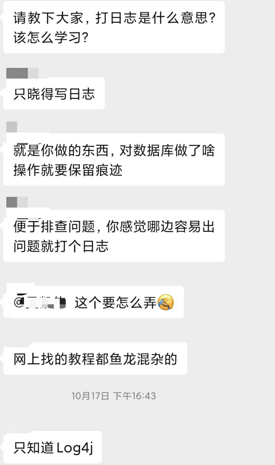竟然有小伙伴不知道“打日志”是什么意思,不知道该怎么学习,还有小伙伴回答说,只知道 Log4j!