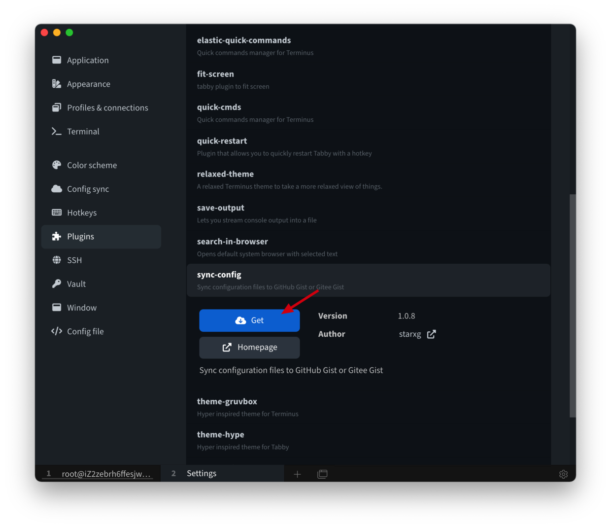 这里重点说一下「sync config」 这个插件,可以将配置同步到Github或者Gitee的插件。点击「Get」就可以安装,之后会提示你重启生效。