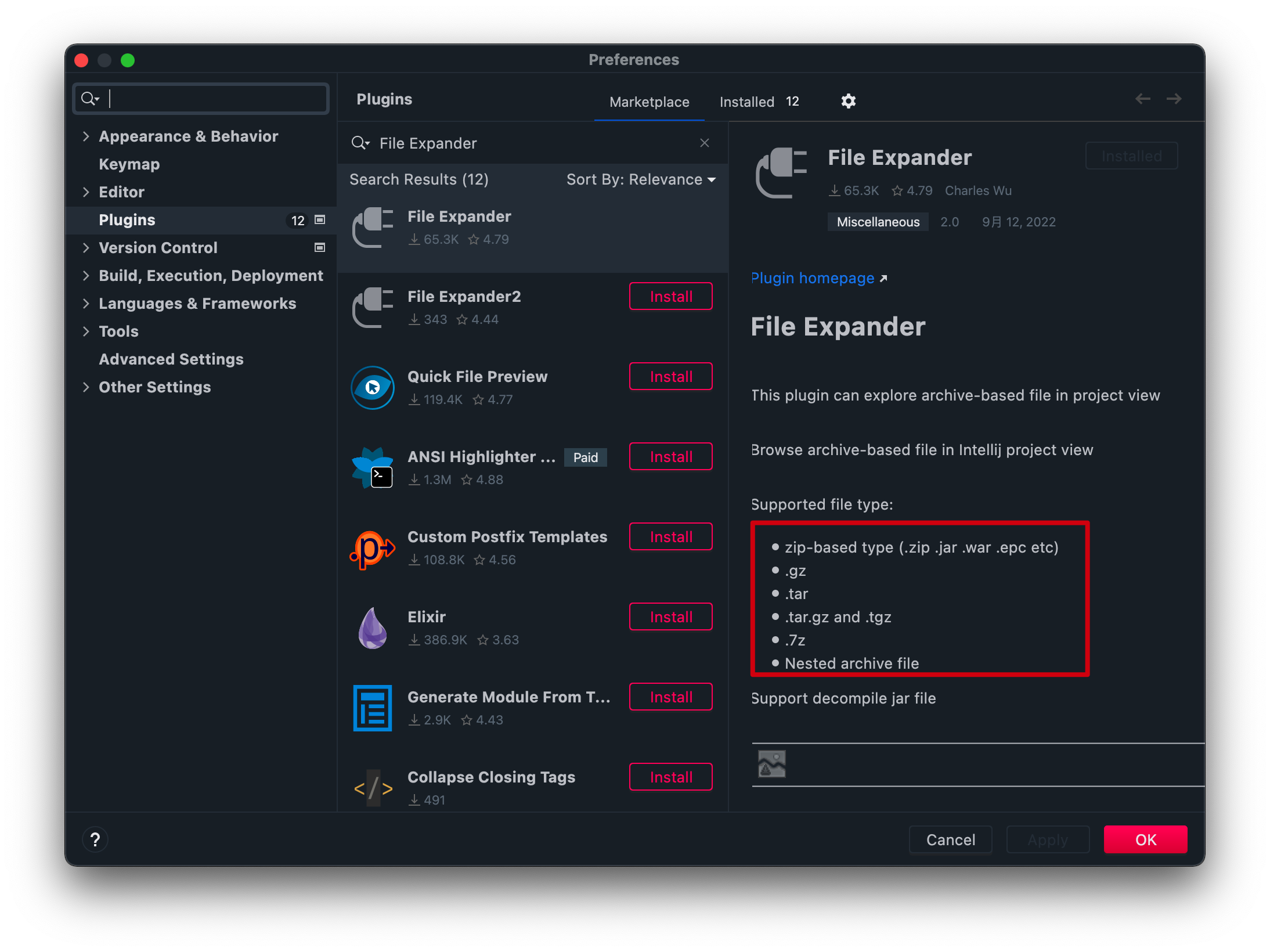 这个插件不仅可以反编译,还可以打开 tar.gz,zip 等压缩文件,