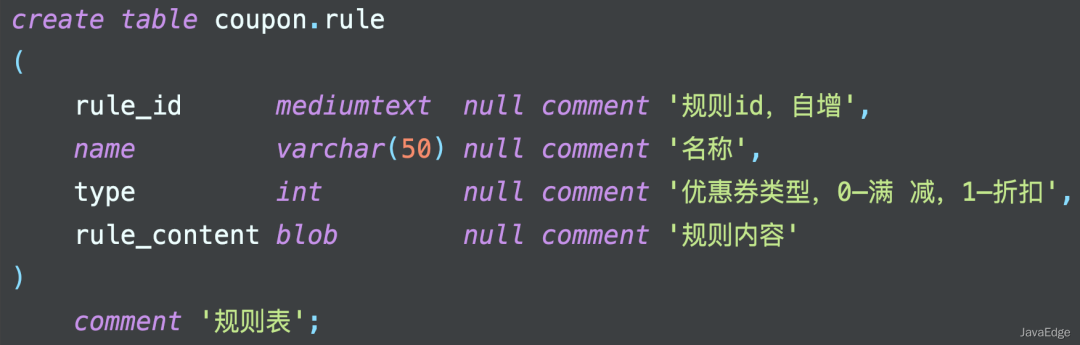 SELECT name, type, rule_content FROM rule WHERE rule_id = 1010;选择可用券,并返回结果