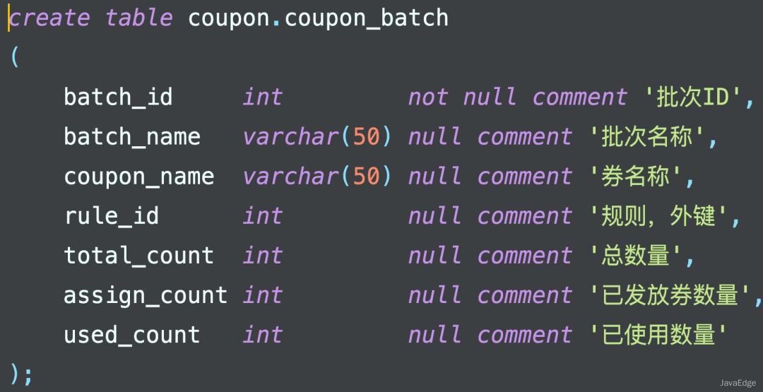 WHERE batch_id = 1111;- 新增优惠券用户表,扣减余量