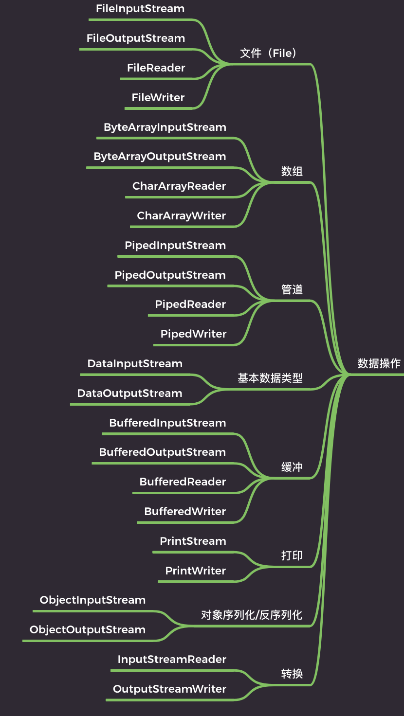 文件操作算是 IO 中最典型的操作了,也是最频繁的操作。那其实你可以换个角度来思考,比如说按照 IO 的操作对象来思考,IO 就可以分类为:文件、数组、管道、基本数据类型、缓冲、打印、对象序列化/反序列化,以及转换等。