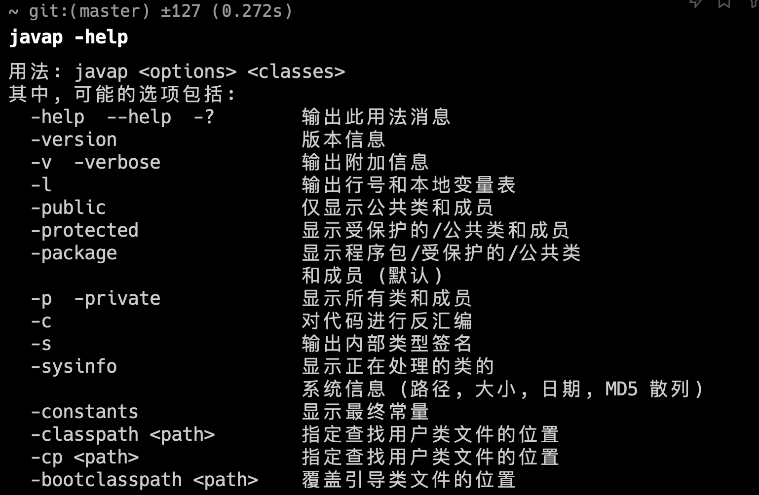 Java 内置了一个反编译命令 javap,可以通过 javap -help 了解 javap 的基本用法。