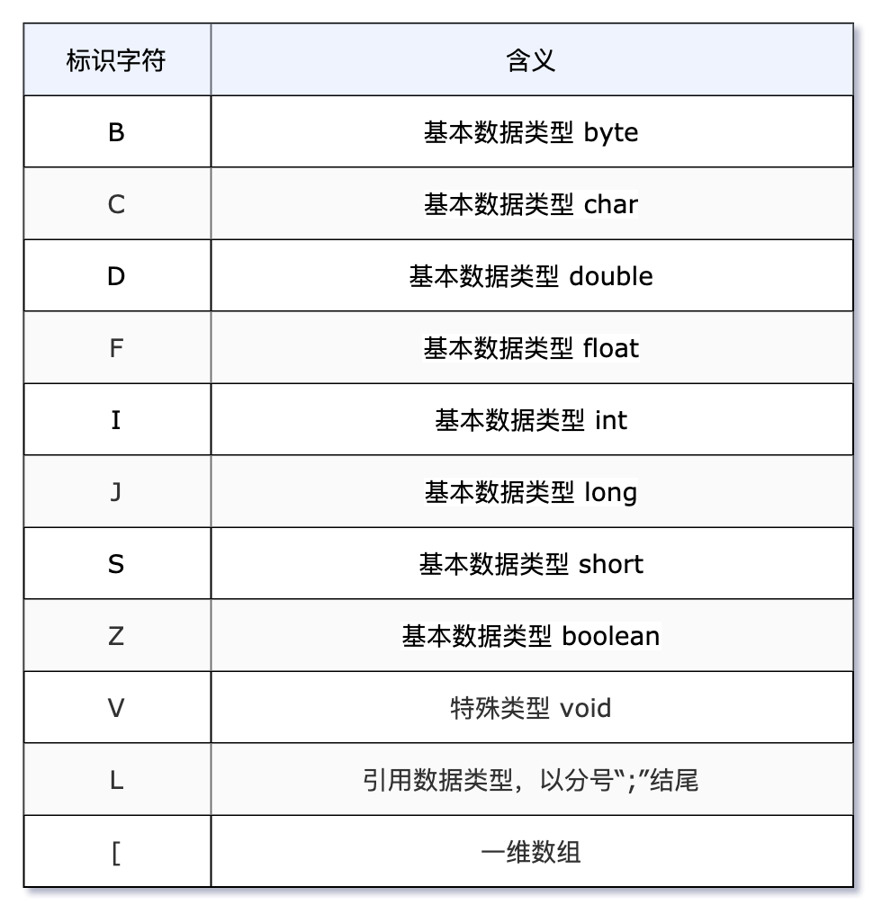 关于字段类型的描述符映射表如下图所示,上一节其实也讲过,只不过是从 16 进制来看的,这一节是从 javap 的角度来看的。