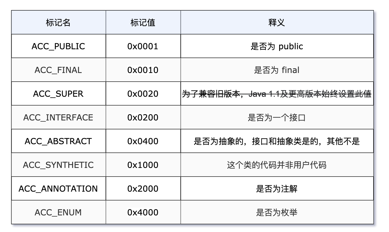 this_class: #3 // com/itwanger/jvm/Main当前类的索引,指向常量池中下标为 3 的常量(上一节刚讲过),可以看得出当前类是 Main 类。