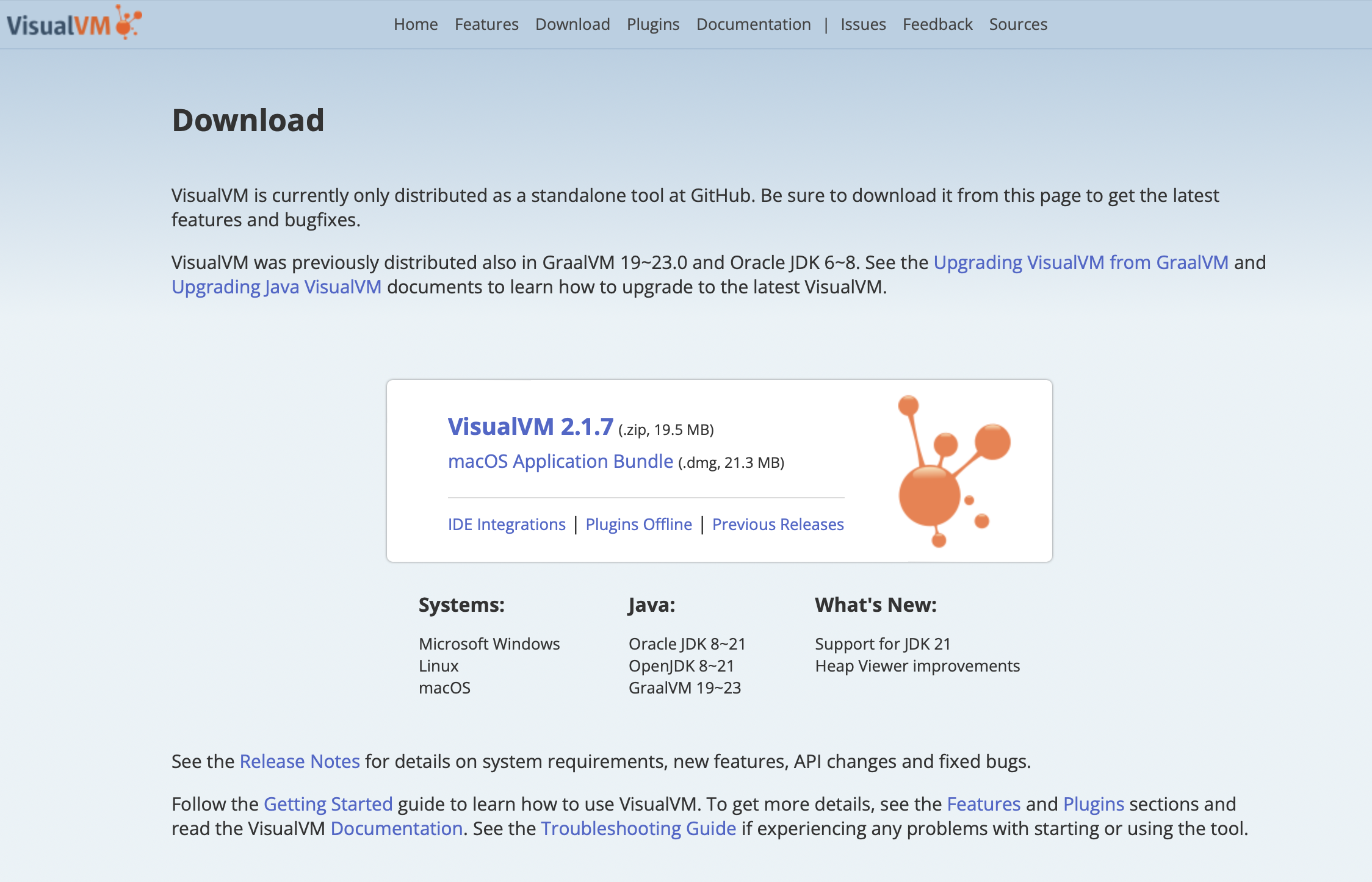 VisualVM 的安装非常简单,下载地址:https://visualvm.github.io