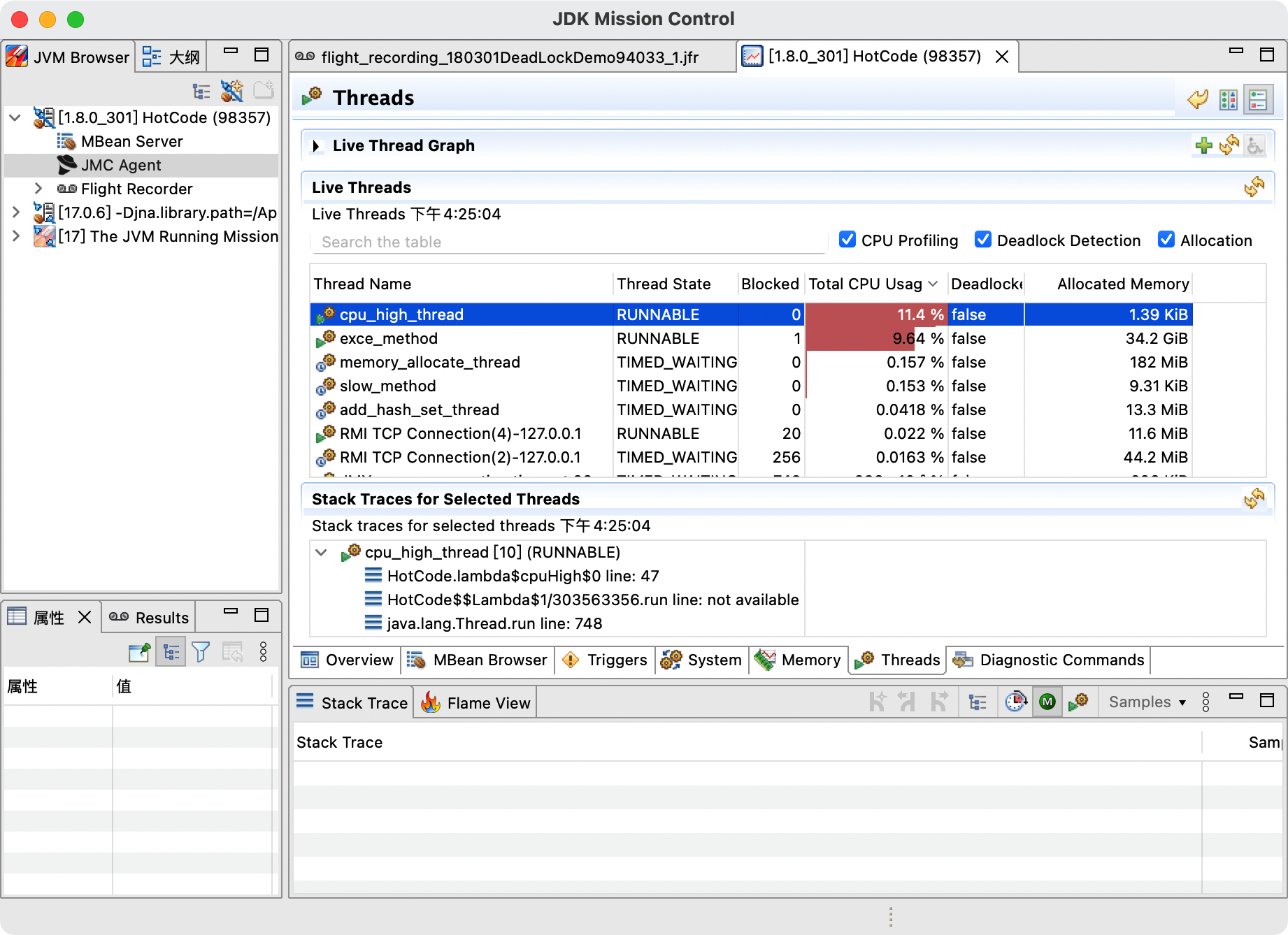 飞行记录器(JFR)是 JMC 提供的另一功能,通过记录应用程序在一段时间内的运行情况,再进行分析和展示,可以更进一步对应用程序的性能进行分析和诊断。