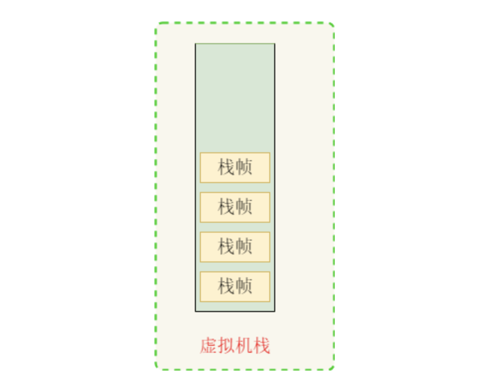 虚拟机栈是线程私有的,每个线程都有自己的 Java 虚拟机栈。方法调用时都会创建一个新的栈帧,该栈帧被推入虚拟机栈,成为当前活动栈帧。