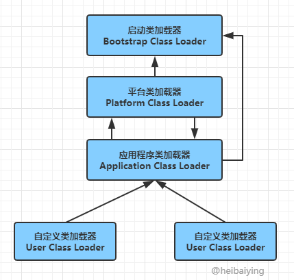 - 启动类加载器、平台类加载器、应用程序类加载器全部继承自