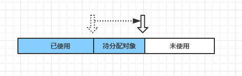 此时内存分配只是将指针向空闲方向偏移出对象大小的空间即可,这种方式被称为指针碰撞。