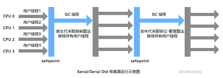 ①、指针碰撞:假设 Java 堆中内存是绝对规整的,所有使用的内存放在一边,所有未被使用的内存放在另外一边,中间以指针作为分界点指示器。