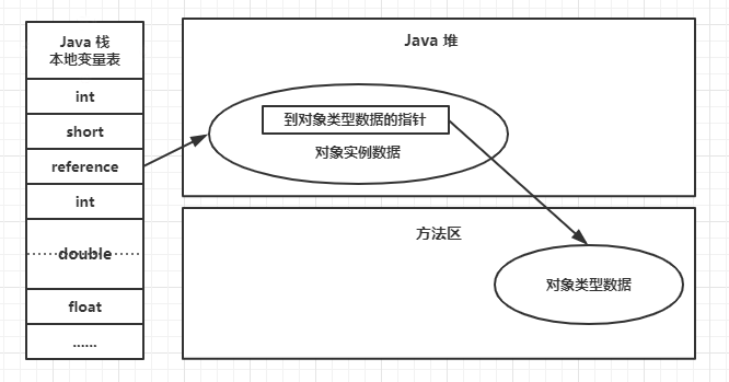 reference中存储的直接就是对象地址,而对象的类型数据则由上文介绍的对象头中的类型指针来指定。