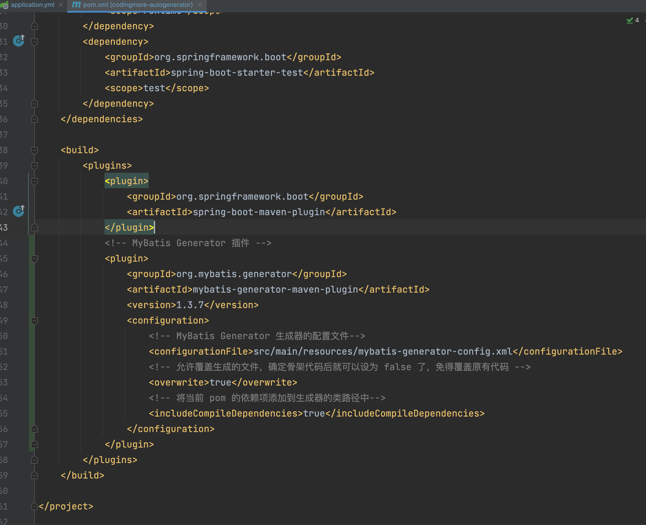 第一步,在 pom.xml 文件中添加 AutoGenerator 的依赖。