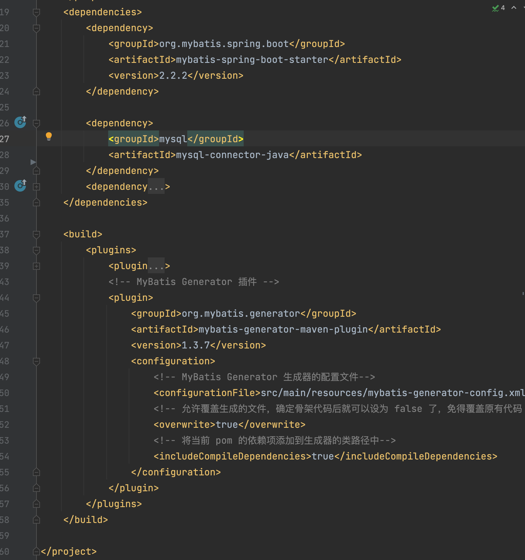 来看一下添加 MyBatis Generator 插件后 pom.xml 文件的结构图。
