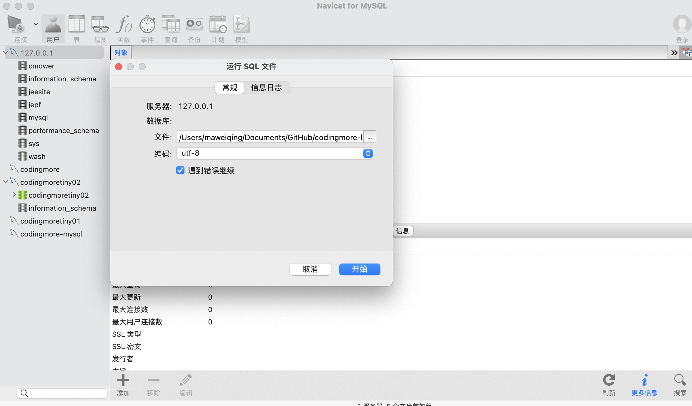 打开 Navicat,把 SQL 文件导入到本地数据库,