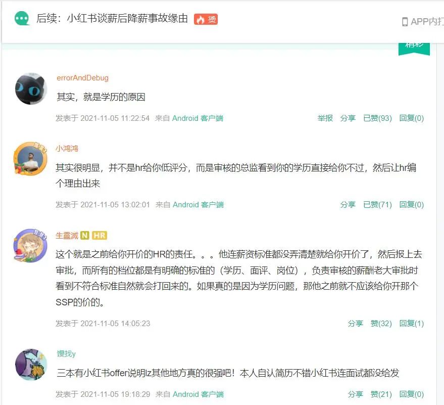 需要认清的事实是,现在互联网中大厂应该普遍不接受专科及以下的学历了,对二/三本也有一些意见,例如有一位三本同学在拿到小红书的 SSP 的 Offer 后,被告知 Offer 审批不通过,给了个最低的价格,也俗称白菜价。评论区一致认为就是学历的锅,我也不置可否。