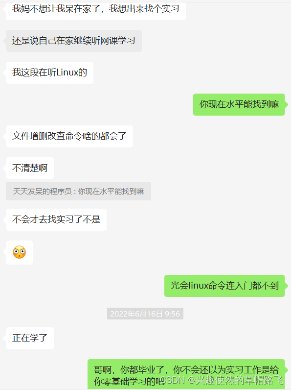 下图是前段时间,和我的大学好基友的聊天记录(22 年毕业生,已经考研上岸):