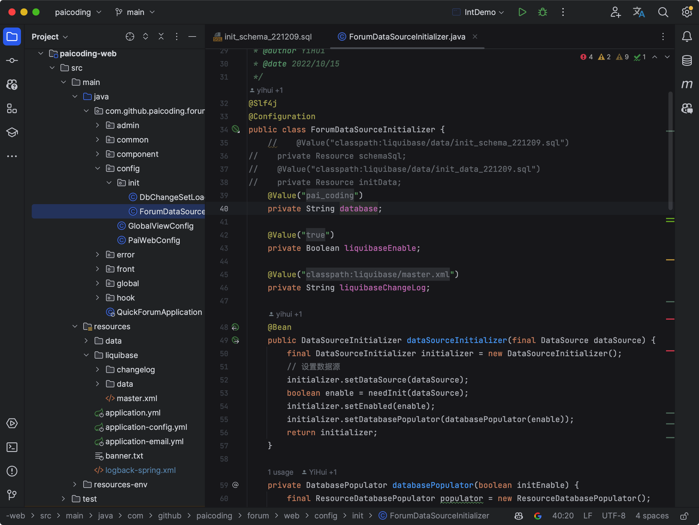 这里我做一些简单的介绍,实现源码在 ForumDataSourceInitializer 这个类中。