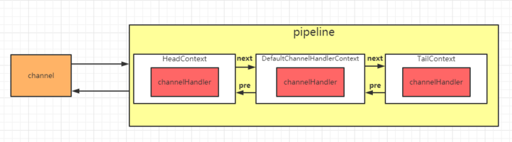 于是pipeline就出现了,pipeline相当于处理器的容器。初始化channel时,把channelHandler按顺序装在pipeline中,就可以实现按序执行channelHandler了。
