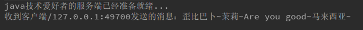 System.out.println("java技术爱好者的服务端已经准备就绪...");
