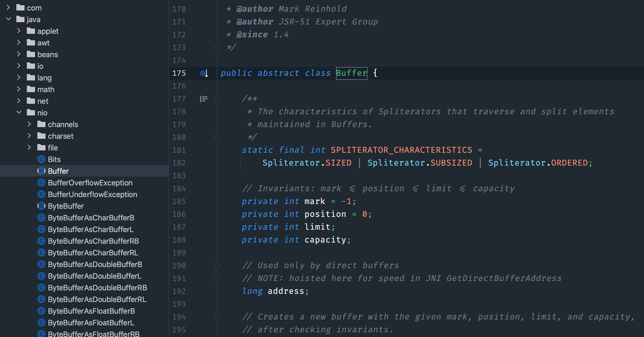 Buffer 类维护了 4 个核心变量来提供关于其所包含的数组信息。它们是: