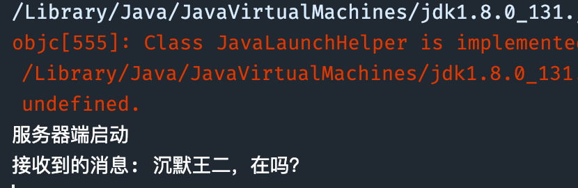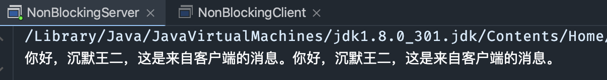 先运行 BlockingServer,再运行 BlockingClient,可以在 Server 端的控制台收到以下信息。