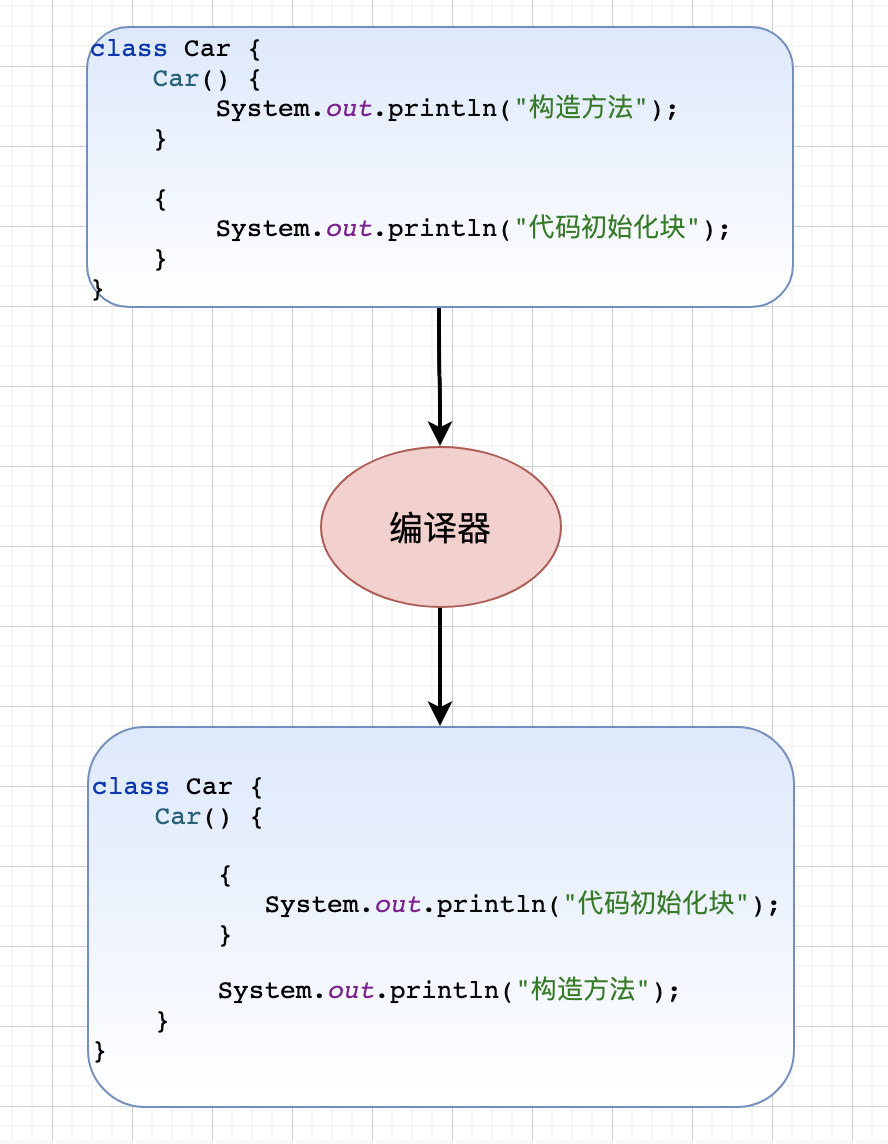 “哦,原来如此啊!”三妹仿佛发现了新大陆,意味深长地说,“编译器把代码初始化块放到了构造方法中,怪不得。”