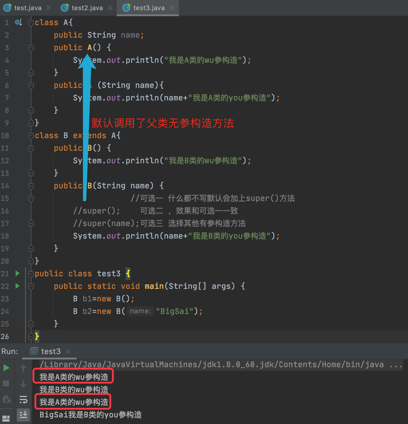 }从输出结果上看,是不是有点诧异?明明在创建 Wangxiaosan 对象的时候,年龄传递的是 4,但输出结果既不是“老子上幼儿园的年龄是 3 岁半”,也不是“我小三上幼儿园的年龄是:4”。