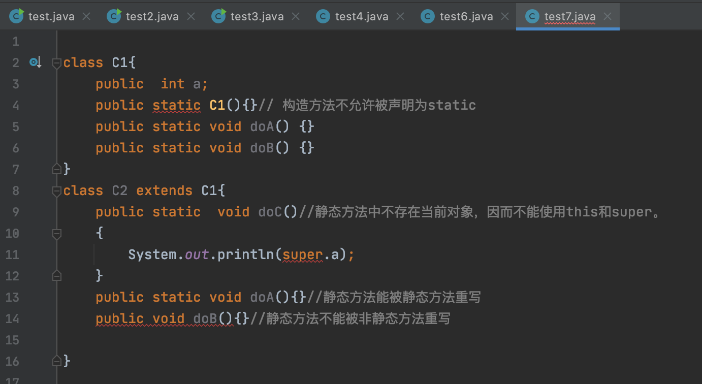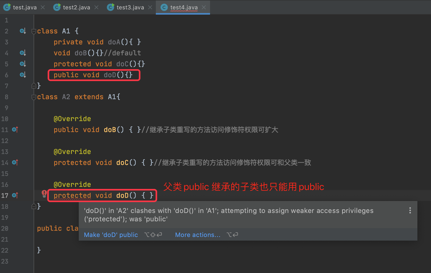 - 子类可以重写从父类继承来的方法,使得子类对象调用这个方法时表现出不同的行为。