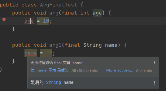 final int age = 18;“当尝试将 age 的值修改为 30 的时候,编译器就生气了。”