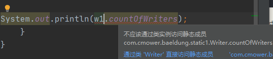 “另外,需要注意的是,由于静态变量属于一个类,所以不要通过对象引用来访问,而应该直接通过类名来访问,否则编译器会发出警告。”