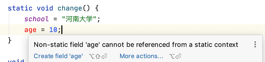 “先是在静态方法中访问非静态变量,编译器不允许。”